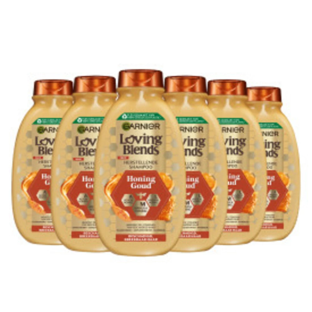 Garnier Loving Blends Honing Goud ShampooLoving Blends Honing Goud Shampoo is een herstellende shampoo, speciaal ontwikkeld voor beschadigd en breekbaar haar. Speciaal voor beschadigd en breekbaar haar heeft Garnier Loving Blends een nieuw recept samengesteld. Dit recept combineert drie schatten uit de honingraat:Revitaliserende royal jelly voor het versterken van het haar vanaf de wortelBijenbalsem, een natuurlijke stof gemaakt door bijen, bekend om zijn reinigende werkingHoning voor de zachthe