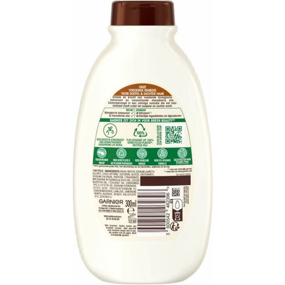 Garnier Loving Blends Kokosmelk en Macadamia ShampooLoving Blends Kokosmelk & Macadamia Shampoo is een voedende shampoo die normaal tot droog haar voedt, verzacht en versoepelt. Speciaal om normaal tot droog haar te voeden en verzachten heeft Garnier Loving Blends een recept ontwikkeld met kokosmelk en macadamia. Dagelijks gebruik van dit recept maakt het haar zachter en soepeler, en geeft een schitterende glans. Aanbrengen op vochtig haar, zachtjes in het haar masseren en spoel vervolgens g
