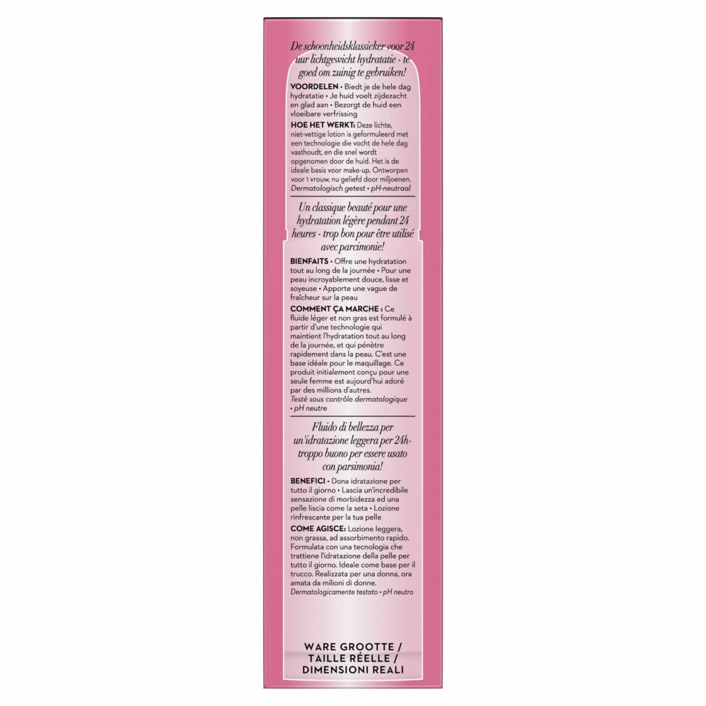 Olay Essentials Beauty Fluid Gezichtslotion Te goed om zuinig te gebruiken.Olay Hydraterende Lotion is de oplossing voor je huidverzorgingsbehoeftenBiedt een essentiële hydratatie van 24 uur per dag, waardoor je huid zacht en soepel blijftEen licht en zijdezacht gevoel en de ideale basis voor make-upMet hydraterende voedingsstoffen die vocht helpen vasthouden en het dagelijkse hydratatieniveau van de huid helpen behoudenDe niet-vettige, snel-absorberende formule verstopt de poriën