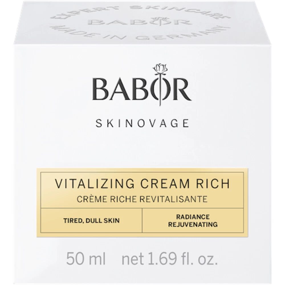 Babor Skinovage Vitalizing Cream RichDe Babor Skinovage Vitalizing Cream Rich 50ml is een intensief voedende crème die de huid voedt en verzacht. De crème bevat een unieke combinatie van actieve ingrediënten die de huid revitaliseren en verjongen. Het resultaat is een gehydrateerde, stralende en gezonde huid.Intensief voedende crèmeUnieke combinatie van actieve ingrediëntenRevitaliseert en verjongt de huid