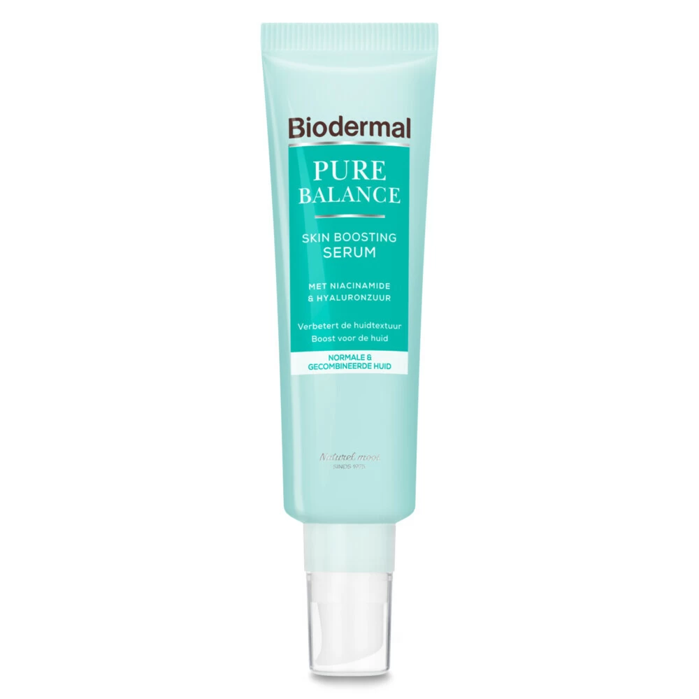 Biodermal Pure Balance SerumBiodermal Pure Balance Skin Boosting Serum is een hooggeconcentreerd serum speciaal ontwikkeld voor een volwassen huid met onzuiverheden en oneffenheden. De combinatie van actieve ingrediënten, zoals hyaluronzuur en niacinamide, heeft een intensieve en effectieve werking. Het serum is een dagelijkse boost voor de huid en heeft een lichte textuur die gemakkelijk door de huid wordt opgenomen. De formule verbetert en verfijnt de huidtextuur, geeft een intensieve hyd
