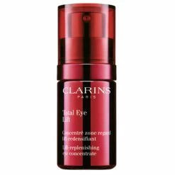 Clarins Total Eye Lift Oogcrème De verstevigende Total Eye Lift is specifiek ontwikkeld om het hele gebied rondom de ogen te laten stralen, van slaap tot slaap. Deze fijne emulsie met een gladmakende textuur vereenvoudigt het aanbrengen van make-up en zorgt ervoor dat deze langer houdt. Geschikt voor gevoelige ogen en lensdragers.Liftend effectMaakt fijne lijntjes, rimpels en kraaienpootjes gladVervaagt kringen en wallenVerdoezelt tekenen van vermoeidheidVersterkt de blikLaat de oogo