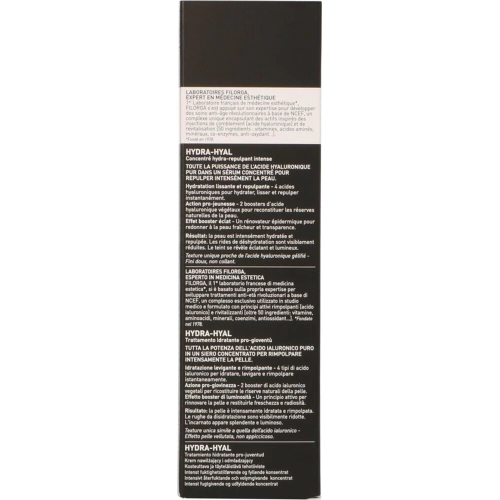 Filorga Serum Hydra-HyalDeze verzorging met hyaluronzuur hydrateert de huid onmiddellijk en doet haar stralen. Na 2 weken zijn uitdrogingsrimpeltjes zichtbaar verminderd.Hydratatie: 4 hyaluronzuren dringen tot in de kern van de huid om haar onmiddellijk te hydrateren, voller en gladder te makenJeugdigheid: 2 plantaardige boosters stimuleren de productie van hyaluronzuur, voor de verjongende werkingStralende huid: NCTF zorgt ervoor dat de huid weer straalt