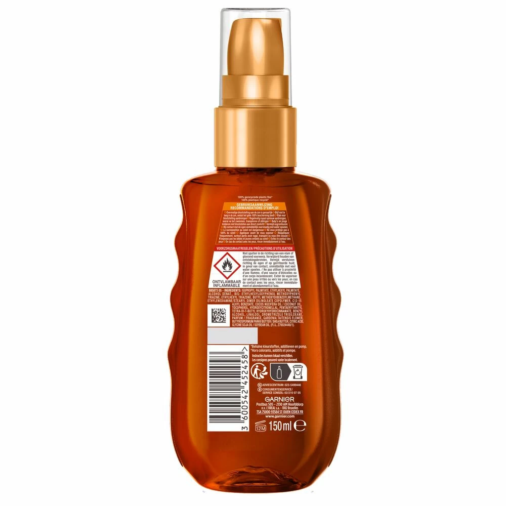 Garnier Ambre Solaire Zonneolie SPF 15Behoud je gebruinde tijd met de Garnier Ambre Solaire Zonnebrandolie SPF 15. De met karitéboter verrijkte zonnebrandolie geeft je huid een zijdezacht gevoel en een optimale bruining.Diepe, langdurige teintGemiddelde zonbescherming met SPF 15Geeft een mooie glans aan de huidIn handige sprayflacon