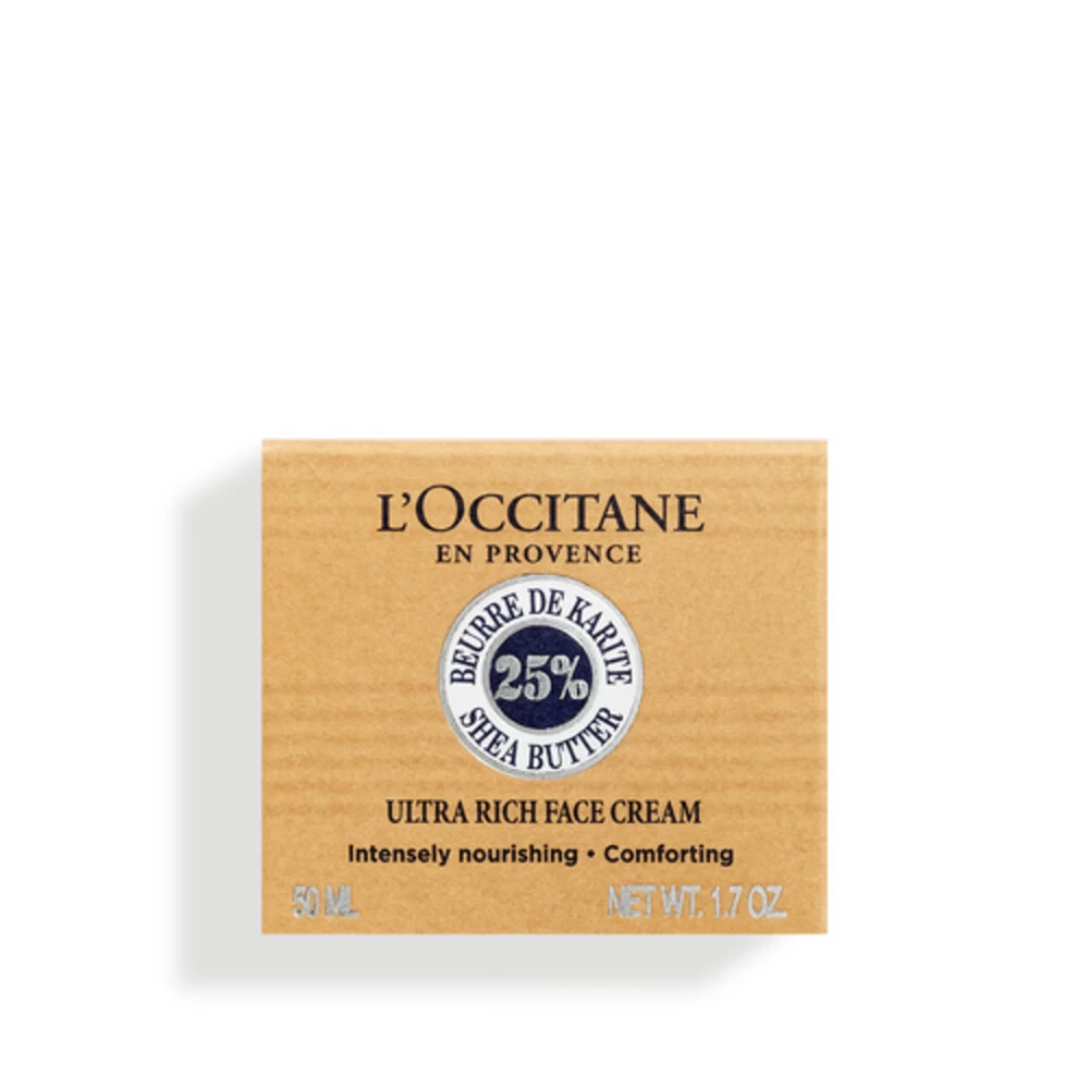 Lu0027Occitane Shea Ultra Rich Comforting GezichtscrèmeDeze universele crème, met een ultraconcentratie van 25% karitéboter, smelt op de huid en biedt onmiddellijk comfort aan de (zeer) droge en gevoelige huid, die 48 uur lang gevoed blijft. De huid lijkt onmiddellijk gekalmeerd, sterker en beter beschermd tegen agressies van buitenaf, zoals extreme kou.Het voeden van de huidHet parfumeren van de huidProduct voor de hele familie (vanaf 3 jaar oud)