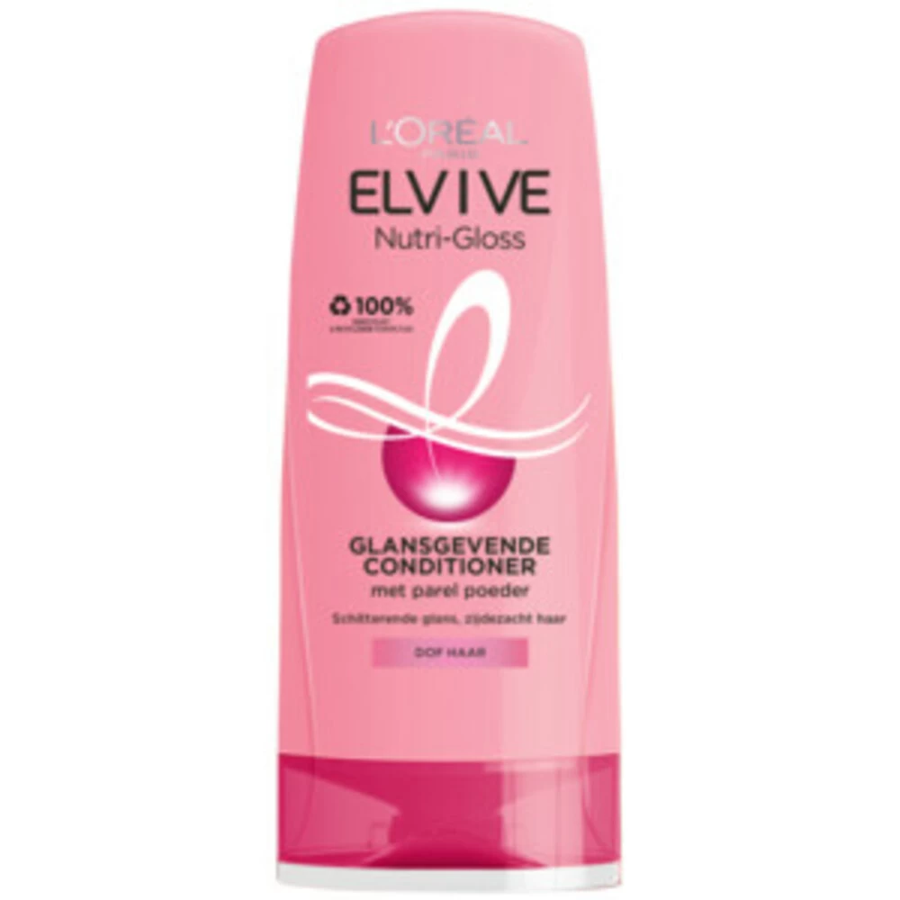 Lu0027Oréal Elvive Nutri-Gloss PakketLu0027Oréal Elvive Nutri-Gloss ShampooHoe langer je haar is, hoe gevoeliger het wordt. Het haar kan na verloop van tijd dof worden: het heeft een gebrek aan glans, vitaliteit en zachtheid. Elvive Nutri-Gloss verrijkt met Proteïne en parel geeft een gelijkmatige voeding aan je haarvezel, zonder het te verzwaren en geeft je haar een ultieme glans: je haar vangt en reflecteert het licht optimaal. Het haar wordt schitterend glanzend en voelt