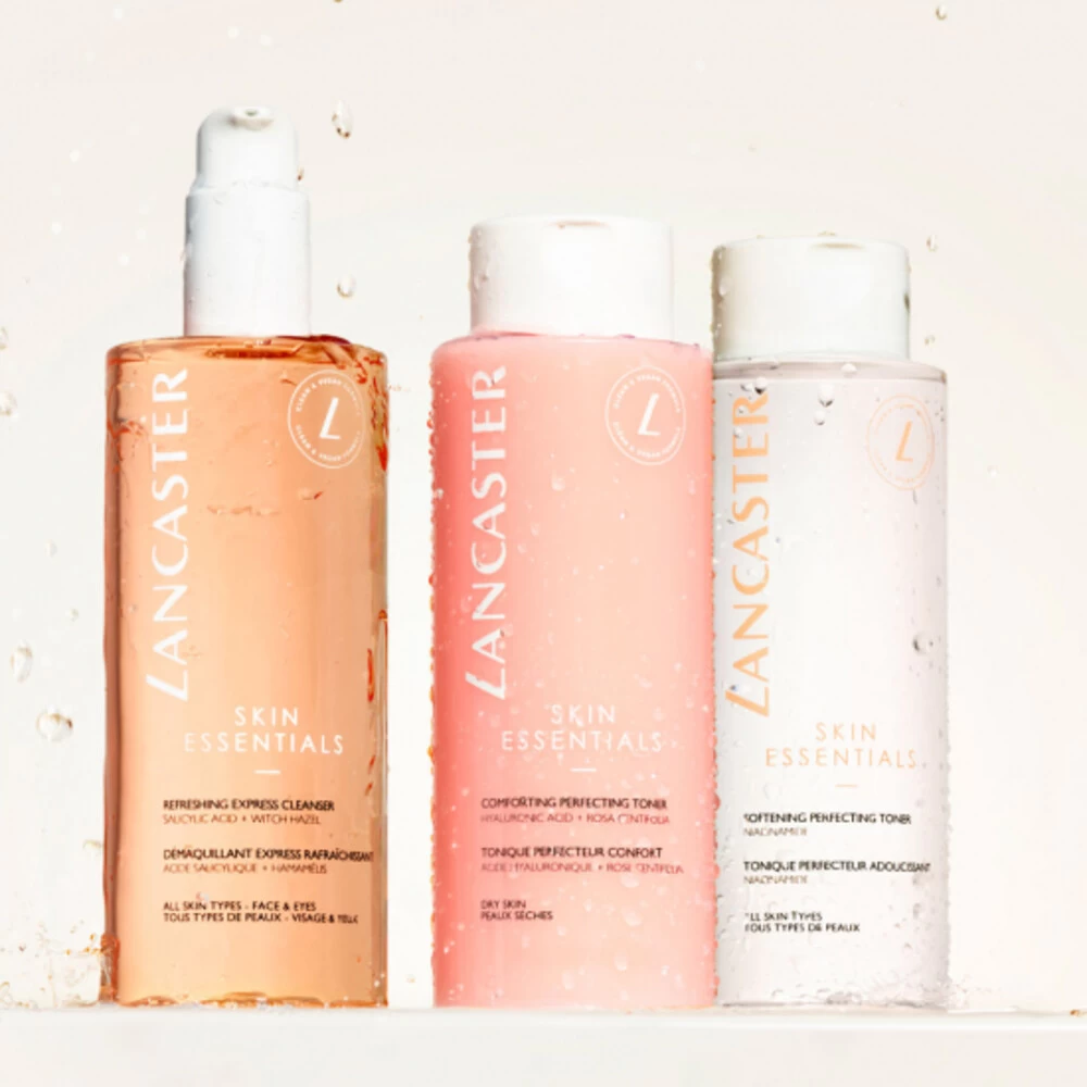 Lancaster Skin Essentials Softening Facial TonerDe perfectionerende beauty toner van Lancaster met vitaliserende en verzachtende werking helpt de huid te kalmeren. De Softening Perfecting Toner verkwikt de huid en is de perfecte aanvulling op de reinigingsroutine. De formule, verrijkt met kalmerende niacinamide en extract van driekleurige viooltjes, heeft een hydraterende en revitaliserende werking die de huid helpt te kalmeren. De huid is verfrist, zacht en heeft een gezonde uitstraling. De hui