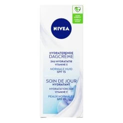 Nivea Essentials Hydraterende Dagcreme SPF15 50 mlNivea Essentials Hydraterend Normale tot Gemengde Huid Dagcrème is een geweldige aanvulling op jouw dagelijkse gezichtsverzorgingsroutine. Het hydrateert intensief tot 24 uur en brengt zo het eigen vochtniveau van je huid in evenwicht. De formule met Nivea Moisture Care Complex, Vitamine E en Lotus Extract verfrist en maakt je huid voller met snel opneembaar vocht.De crème beschermt je huid tegen invloeden van buitenaf en dankzij SP