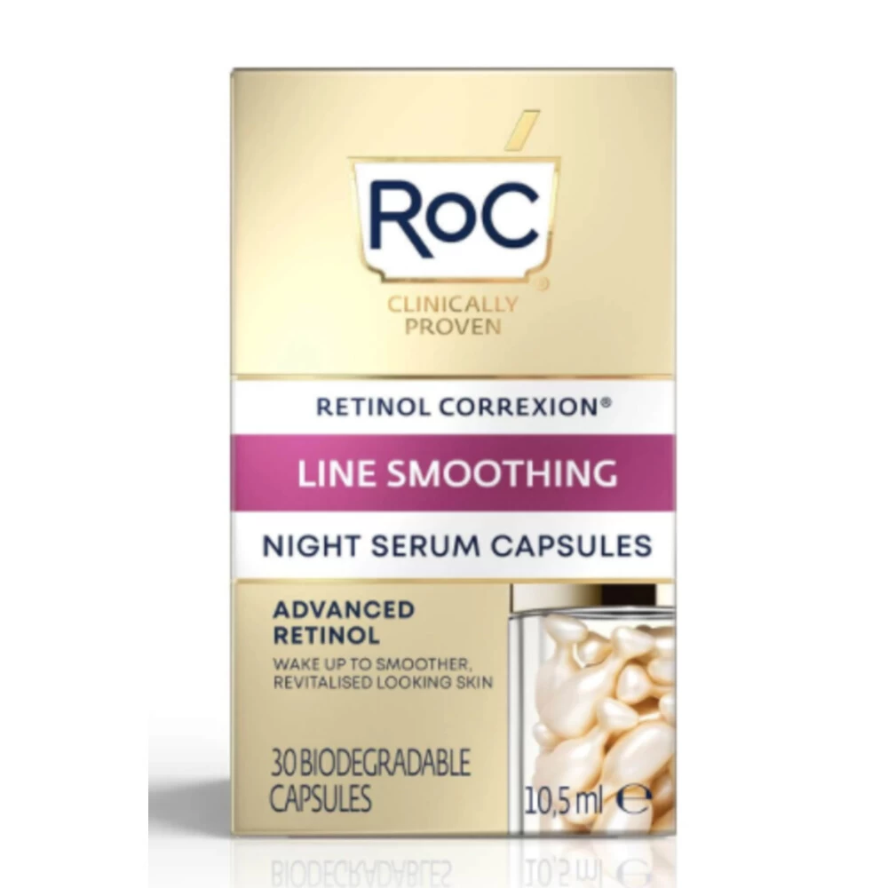 RoC Retinol Correxion Serum NachtOntdek een krachtige nachtelijke vernieuwingsbehandeling in een capsule voor eenmalig gebruik, goed afgesloten voor optimale versheid. De RoC Retinol Correxion Line Smoothing Night Serum Capsules verzachten en verbeteren drastisch het uiterlijk van de collageenarme huid.Gemaakt met pure RoC Retinol + een bio-afgeleide antioxidantElke plantaardige capsule is 100% biologisch afbreekbaarKlinisch bewezenGeurvrijDermatologisch getest